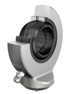 Rod end with welding shank is made up of rod end housing and a radial spherical plain bearing GE...E or GE...ES. The rod end housing is made of weldable steel, featuring a dowel pin in shank bottom and welding chamfer. This design allows for relubrication via a nipple or hole.